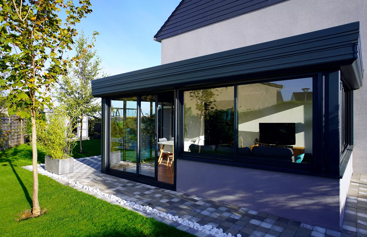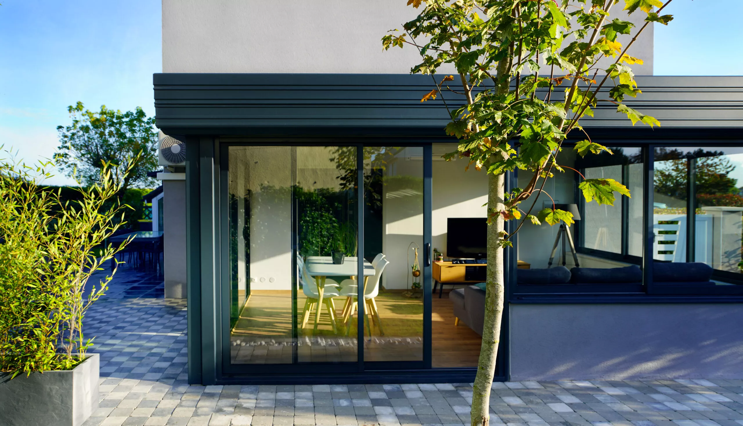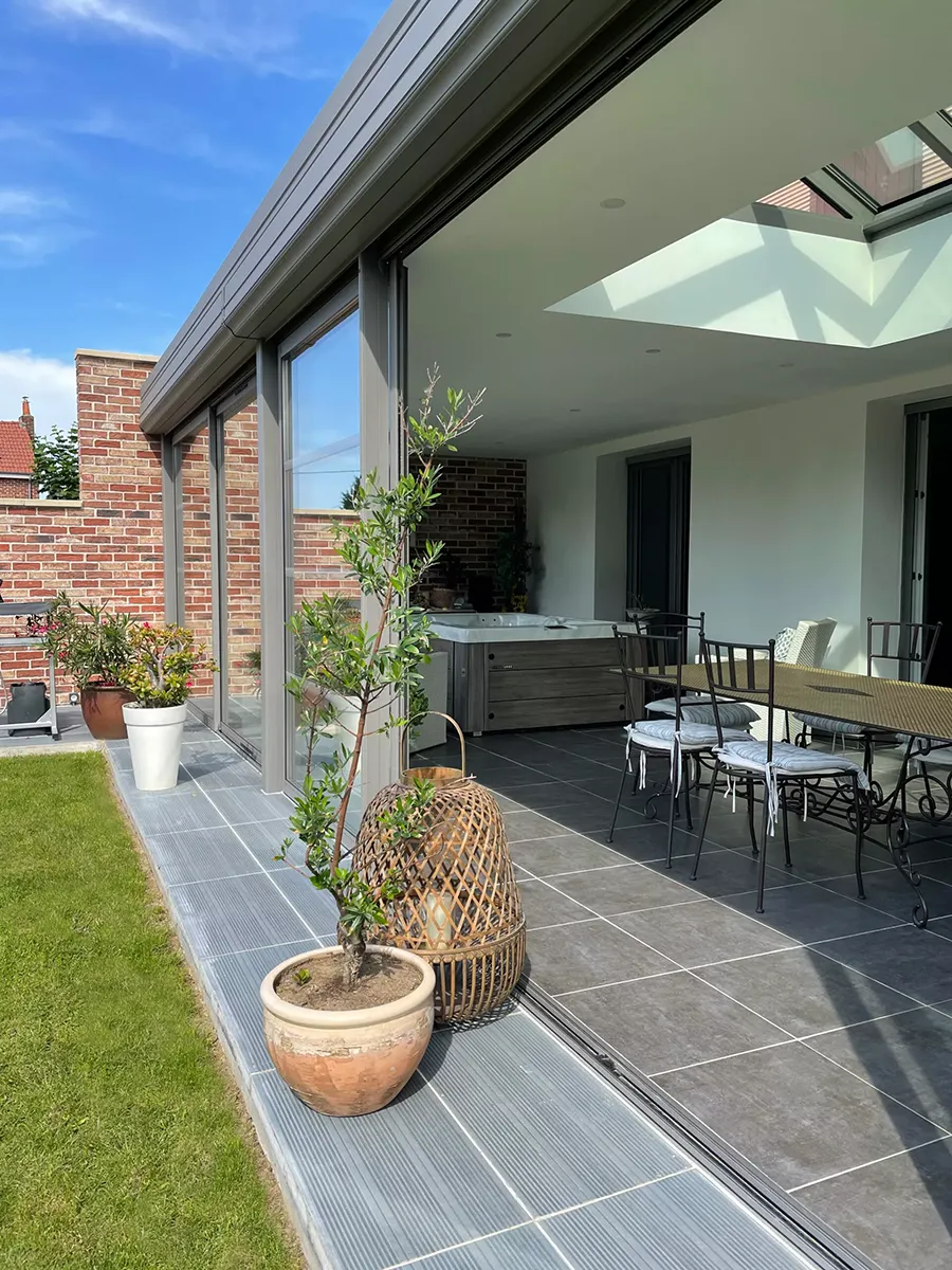 La Villanda®, offre une luminosité naturelle abondante grâce à son design entièrement vitré, est prête à être personnalisée selon vos préférences en matière de décoration. Exprimez votre style en choisissant parmi une gamme de matériaux tels que le carrelage ou le parquet en bois précieux, l’éclairage LED, ainsi qu’un sol multi-niveaux. Et n’oubliez pas nos conseils : les stores pour fenêtres intérieures et extérieures ajoutent une touche finale à votre nouvel espace, avec un large choix de modèles et de coloris pour s’adapter à votre décoration.